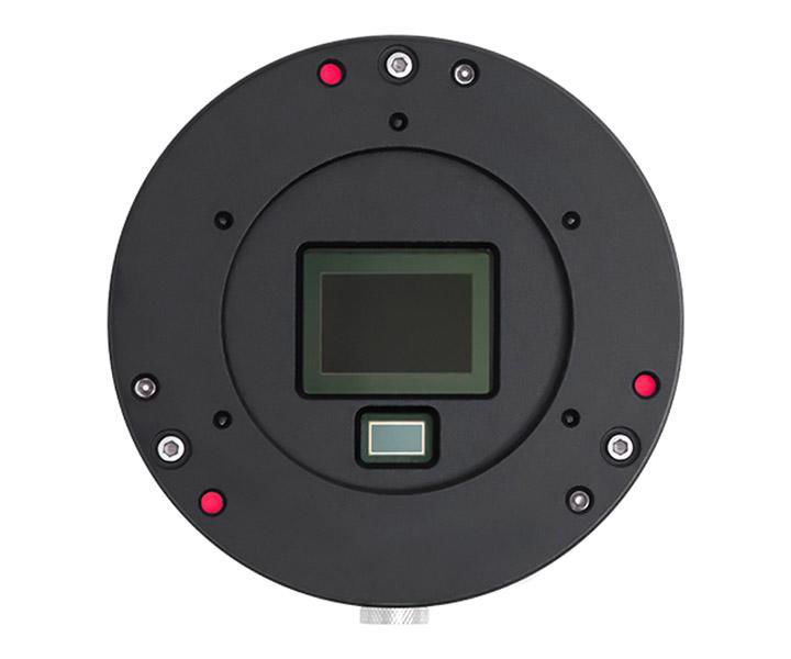 Der Hauptsensor IMX571 im APS-C-Format besitzt insgesamt 26 Megapixel. Die Größe beträgt 23,5 mm in der Breite x 15,7 mm in der Höhe, und die Diagonale beträgt 28,3 mm. Die kleine Pixelgröße von 3,76 x 3,76 Mikrometern ermöglicht eine beeindruckende Full-Well-Kapazität von bis zu 73 ke.Der Guidingsensor