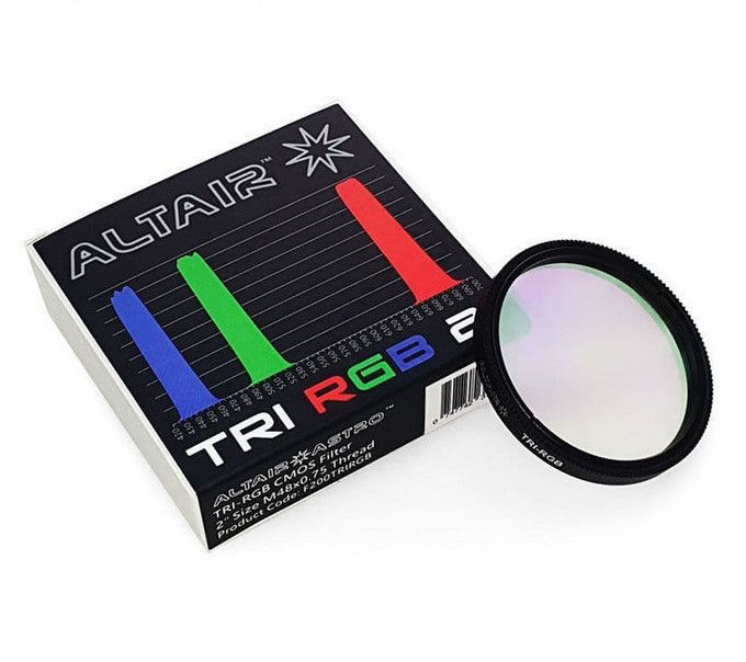 - TRI-RGB ergänzt die Altair TriBand- und DualBand-Filter durch Hinzufügen von Sternfarben.