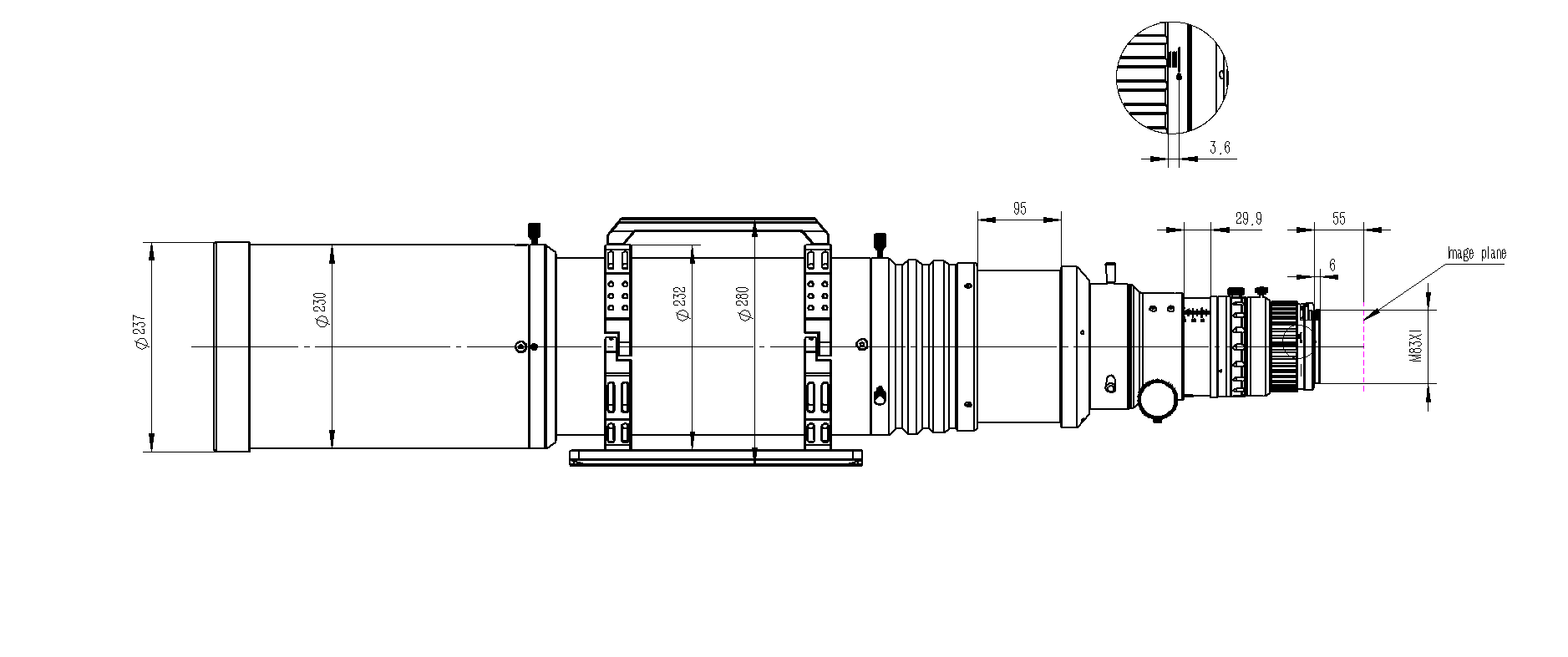 Beispiel: Bemaßung 180mm Refraktor mit Reducer