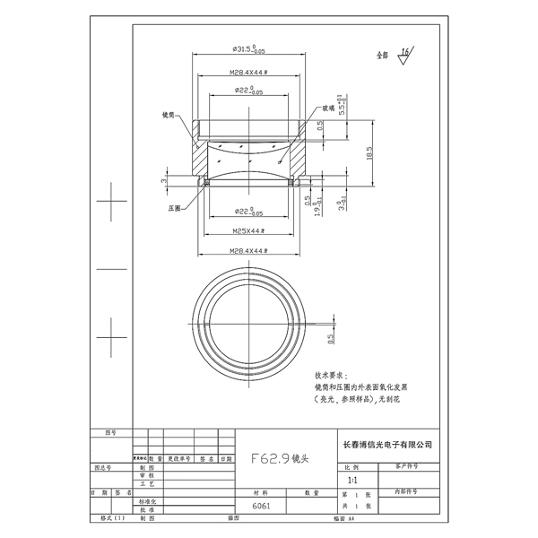 Der optimale Backfokus liegt bei 105 mm ab Mitte letzter Linse. Die Brennweite beträgt - 62,9mm, der freie Durchlass beträgt 22mm.