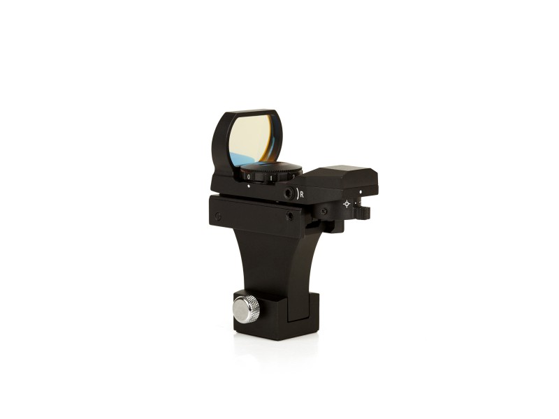 Unser Leuchtpunktsucher ist ein sehr praktische Hilfsmittel zum Anpeilen von Objekten am Nachhimmel. Der Himmel wird unvergrößert dargestellt, lediglich eine "Zielmarke" wird in die Ansicht projiziert. Der Sucher ist für die Astronomie optimiert jedoch auch für die Erdbeobachtung geeignet. Dazu lässt er sich in 7 Helligkeitsabstufungen regeln. Die Projektionseinheit beinhaltet 4 verschiedene Zielsymbole, die Sie über einen Hebel einstellen können: Einen Punkt, ein Kreuz, ein Kreuz mit kleinem Zielkreis und ein Punkt mit größerem Zielkreis.