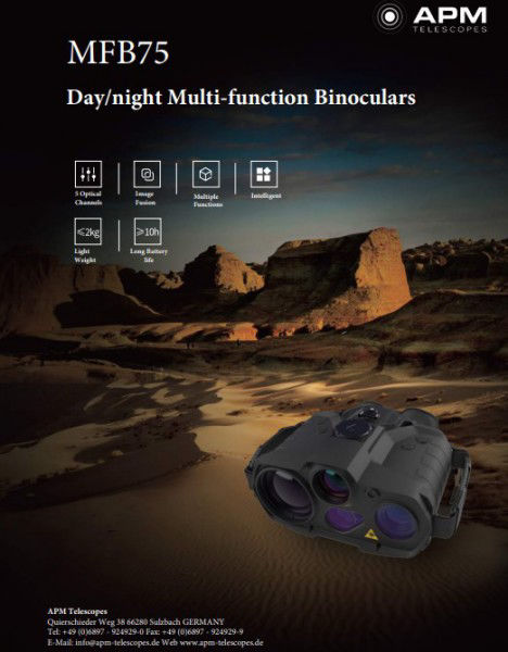 Das Multifunktionsfernglas MFB75 ist ein intelligentes Beobachtungsgerät, das Sensoren für Infrarot, schwaches Licht und sichtbares Licht integriert. Es verfügt über einen Laserpointer und einen Laserentfernungsmesser sowie GPS und einen digitalen Kompass, um eine schnelle und genaue Zielortung zu ermöglichen. Es ist ideal für die Vorwärtsbeobachtung, Grenzüberwachung und Zielerfassung. Das MFB75 bietet auch Bildfusion, um detaillierte Bilder bei Tag und Nacht zu liefern. Diese Bilder oder Videos können auf dem Gerät gespeichert werden - und das alles in einem Gerät, das weniger als 2 kg wiegt.