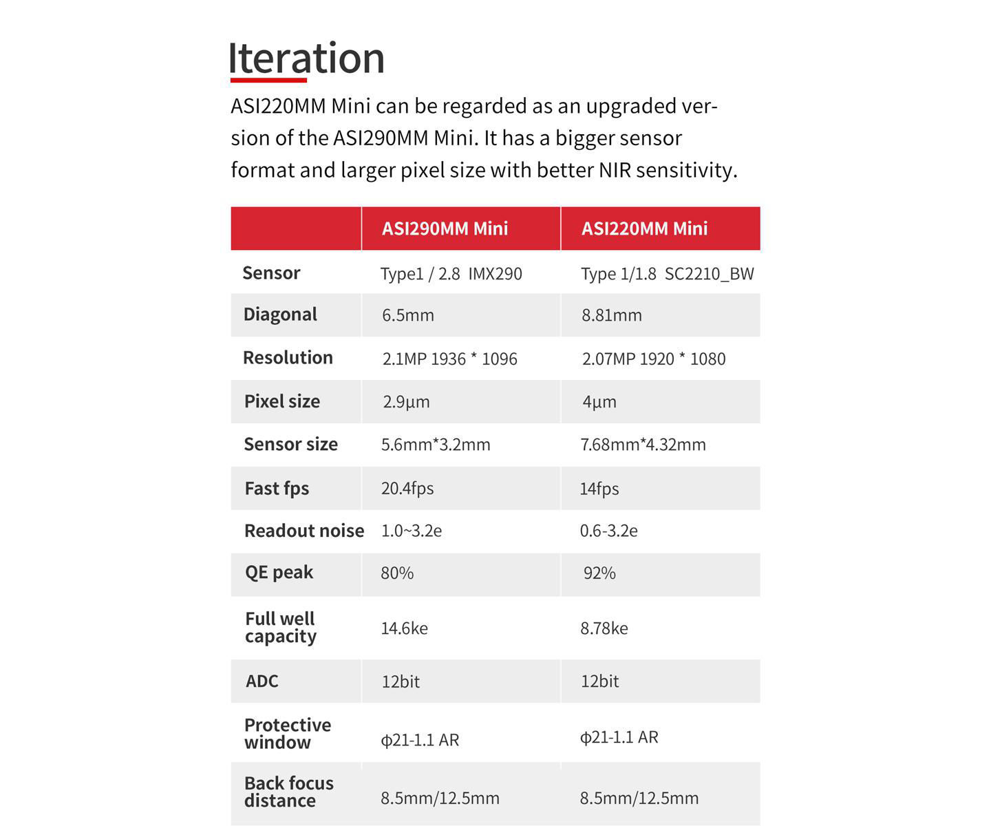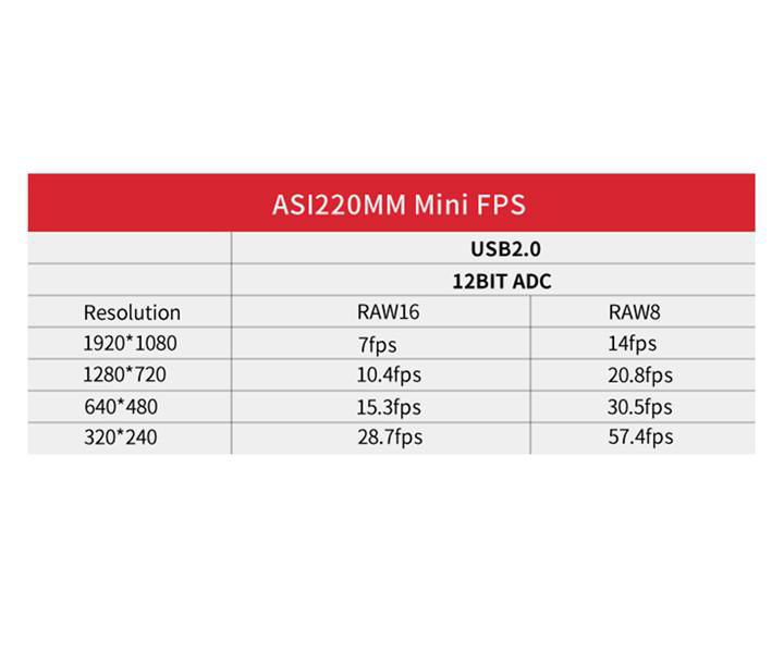 Die ASI220MM Mini kann als eine verbesserte Version der ASI290MM Mini angesehen werden, die ein größeres Sensorformat und größere Pixel mit besserer NIR-Empfindlichkeit aufweist.
