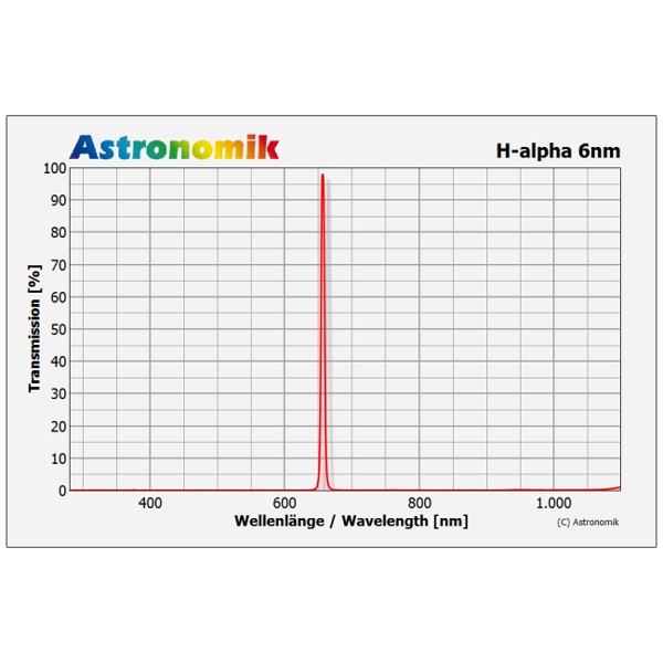 - garantierte Transmission von über 90 % bei der H-alpha Linie (656 nm)