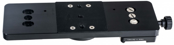 Der Dreifachadapter 160 dual hat eine integrierte Schnellkupplung 160 im UNIQ/C-Schwalbenschwanzprofil und kann mit einer zweiten Schnellkupplung auf der gegenüberliegenden Seite ergänzt werden. Gesamtlänge: 279 mm Abstand von Mitte Schnellkupplung bis Mitte Schraube: 95 mm