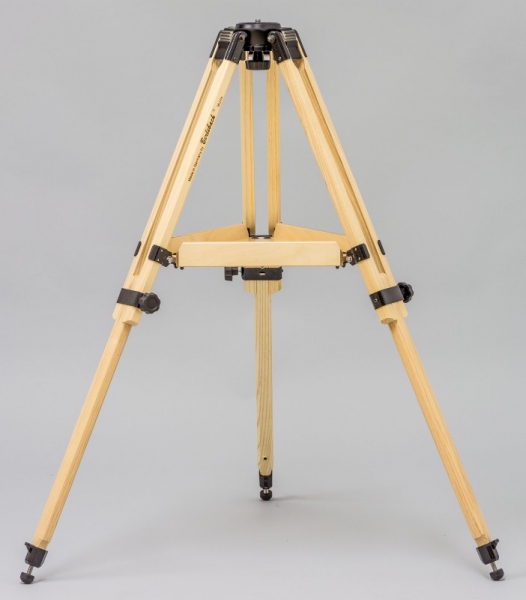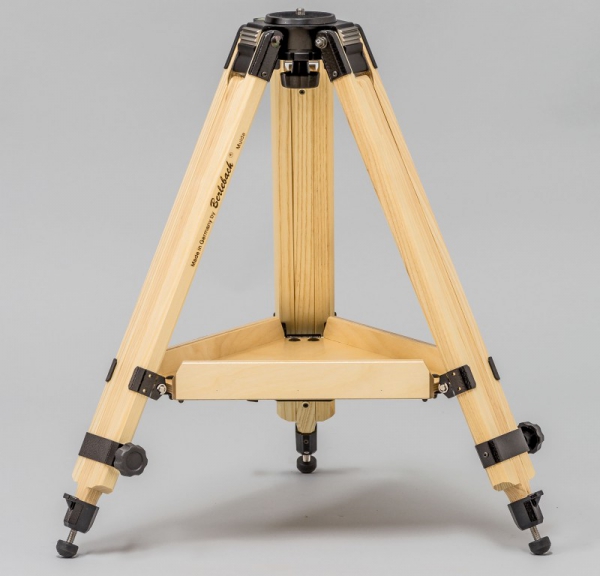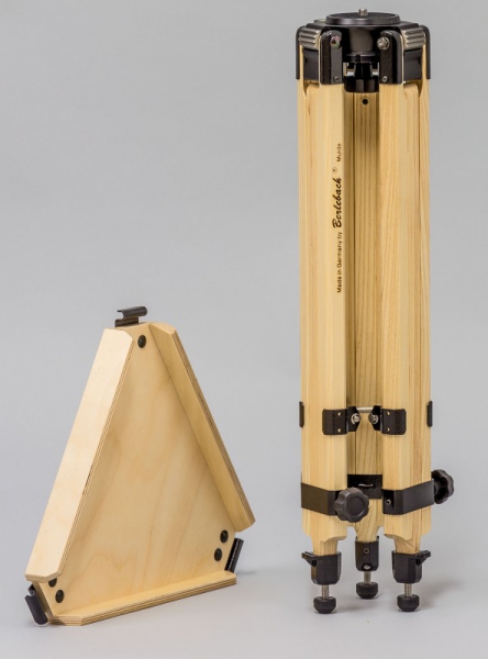 Das Stativ Report 112 ist mit Moduleinsatz 1 ausgestattet. Die Auflagefläche hat einen Durchmesser von 60 mm und ist mit einer federnd gelagerten Befestigungsschraube 1/4", 3/8" oder 5/8" (Größe bitte auswählen)) versehen. Dieser Moduleinsatz ist für die Montage schwerer Geräte geeignet. Diese werden aufgesetzt und mit der Sterngriffschraube von unten fest arretiert. Einfacher Stativbeinauszug Die zum Lieferumfang gehörende Ablageplatte (27 cm) dient nicht nur als Ablagemöglichkeit sondern erhöht auch die Stabilität. Das Stativ wird mit einer Spreizsicherung/Spinne geliefert, auf die die Ablageplatte aufgelegt und verschraubt wird. Die Stative Report Astro werden ohne das sonst bei den Report Foto-Stativen verwendete Anschlagsystem für die Einstellung der Spreizwinkel bei ca. 20°, 40°, 60°, 80° und 100° mittels Flügelraster geliefert. In Verbindung mit den als Zubehör erhältlichen Adapterscheiben empfohlen für Meade ETX-Astroteleskope. An den Metallschellen der Stativbeine besteht die Möglichkeit, eine Stahlkette einzuhängen. Der leichte Schenkelkopf aus Magnesium ist gleichzeitig die Modulbasis für 14 verschiedene Einsätze. Es ist jederzeit möglich, den Moduleinsatz wahlweise mittels Spezialschlüssel (wird bei Lieferung des Wechselmoduls beigelegt) zu wechseln. Die Fixierung im Konus gewährleistet eine formschlüssige, spielfreie Verbindung der Komponenten.