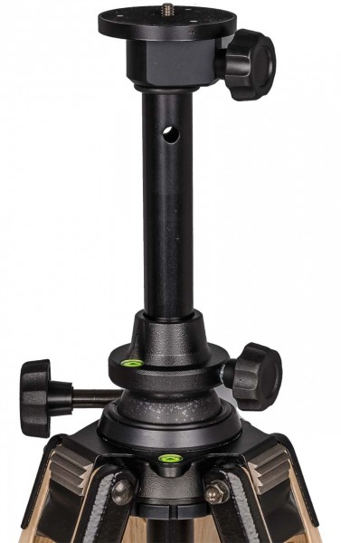 Das Stativ Report 442P ist mit Moduleinsatz 4P ausgestattet. Das Modul 4P ist mit einer 50 cm langen Mittelsäule, Durchmesser 25 mm aus präzisionsgezogenerm Leichtmetallrohr und Nivellierkugel, mit dem fest angebrachtem Panoramadrehteller steht eine klemmbare Horizontalachse zur Verfügung.. Die Nivellierkugel lässt sich mit der Mittelsäule um 30° in jede Richtung neigen. Der Auflageteller aus Aluminium hat einen Durchmesser von 68 mm und ist mit einer feststehenden Befestigungsschraube (Größe auswählen) sowie drei Sicherungsschrauben gegen unbeabsichtigtes Lösen der montierten Technik versehen. Durch die Dosenlibelle ist eine schnelle und genaue Justierung möglich. Bei Verwendung einer extra kurzen Mittelsäule (10 cm) ist ein bodennahes Arbeiten möglich. Der leichte Schenkelkopf aus Magnesium ist gleichzeitig die Modulbasis für 20 verschiedene Einsätze. Es ist jederzeit möglich, den Moduleinsatz wahlweise mittels Spezialschlüssel (wird bei Lieferung des Wechselmoduls beigelegt) zu wechseln. Die Fixierung im Konus gewährleistet eine formschlüssige, spielfreie Verbindung der Komponenten. Mit dem Anschlagsystem können Spreizwinkel bei ca. 20°, 40°, 60°, 80° und 100° mittels Flügelraster eingestellt werden. Das Anschlagsystem ist so ausgelegt, dass die angegebenen Belastungen der Stative auch bei maximaler Spreizung der Stativbeine gewährleistet ist. Dieses Stativ hat die größte Beinlänge mit einfachem Stativbeinauszug.