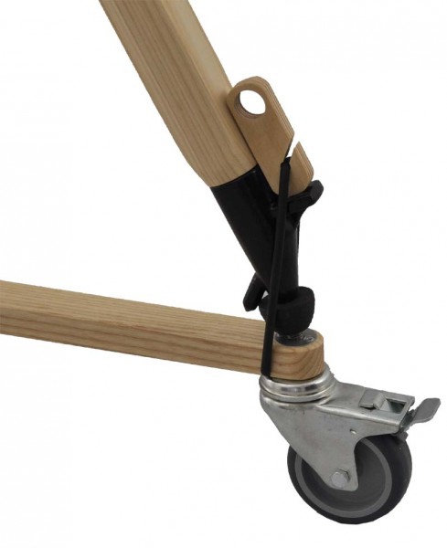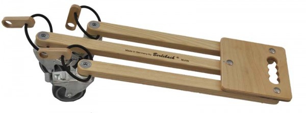 Stativwagen aus Eschenholz - Raddurchmesser 70 mm - jedes Rad einzeln bremsbar - einfache Fixierung des Statives durch Gummi - zum Transport zusammenklappbar - Transportmaß 16 x 58 x 12 cm - nicht ausziehbar - nicht für die UNI-Stative Astro einsetzbar Dieser Stativwagen ist für EMV-Stative mit Fußabschluß Gummikappe (z.B. Report 2022HL) nicht geeignet, da sich dort der Füße nicht fixieren lassen.