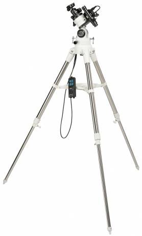 Die Nachführung übernimmt ein präziser Schrittmotor, der über die Handbox zusätzlich mit 2- oder 32-fache Geschwindigkeit im Vor- und Rücklauf bewegt werden kann. Somit kann der Himmelsausschnitt noch genauer eingestellt werden. Der geringe Stromverbrauch ermöglicht mit nur einer Batterieladung den Betrieb von bis zu 50 Stunden.