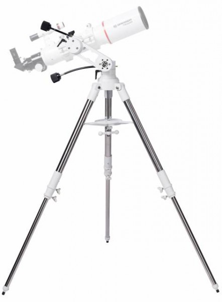 BRESSER Twilight I azimutale Teleskopmontierung mit Stativ Die neue BRESSER Twilight I AZ Teleskopmontierung wurde entwickelt um eine schnelle und einfache Bedienung zu gewährleisten. So können kleine bis mittlere Refraktoren, wie zum Beispiel ein AR-102, AR-127s, ED APO 102mm + 127mm und natürlich alle kleineren Geräte wie der AR-90s/500 oder ED APO 80mm problemlos verwendet werden. Sehr leichte und kurze Newton-Teleskope passen natürlich auch, solange sie ein Tubusgewicht von rund 8 kg nicht überschreiten und über eine 44mm GP-Adapterschiene verfügen.