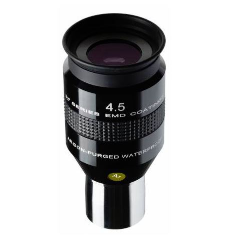 Diese Okulare sind ausgezeichnete Flatfield-Multi-Element-Okulare, die Ihr astronomisches Seherlebnis verändern werden. Die patentierte EMD-Vergütung sorgt für hohen Kontrast und vermeidet störende Reflexe. Ein weiterer großer Vorteil dieser Okulare ist die außergewöhnlich hohe Bildschärfe, die sich gerade bei der Planeten und Mondbeobachtung deutlich bemerkbar macht. Hochleistungsokulare mit kurzen Brennweiten (hohe Vergrößerungen) von 3mm bis 10mm werden nicht nur für Beobachtungen von Mond, Planeten und Doppelsternen verwendet, sondern können auch für helle, kompakte Deep-Sky-Objekte eingesetzt werden. Nicht nur die Größe eines planetarischen Nebels oder Kugelhaufens wird beeindruckend sein, wenn diese das ganze Gesichtsfeld eines Okulars ausfüllen sondern auch der Hintergrundhimmel wird sehr dunkel sein, da sich der effektive Kontrast mit zunehmender Vergrößerung deutlich erhöht. Damit ein scharfes Bild mit hohen Vergrößerungen erzeugt werden kann, sind allerdings gute bis sehr gute atmosphärische Bedingungen erforderlich. Das 4,5mm Okular der 82° LER Serie ist eine beliebte Wahl für eine Vielzahl von Teleskopen, um die höchstmögliche Vergrößerung ohne zusätzlichen Fokal-Extender oder Barlowlinse direkt zu erreichen.