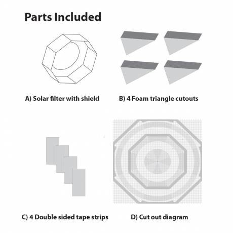 Die in den Sun Catcher Sonnenfiltern verbaute "Solarlite" Spezialfolie schützt das Auge bei der Sonnenbeobachtung zuverlässig vor Infrarot-, ultraviolettem und sichtbarem Licht. Hindurchgelassen wird nur das für die Augen unschädliche, "gedämpfte" Licht der Sonne und erscheint als wunderbares Bild im Okular. Selbstverständlich sind diese Sonnenfilter auch ideal für die Fotografie der Sonne einsetzbar.