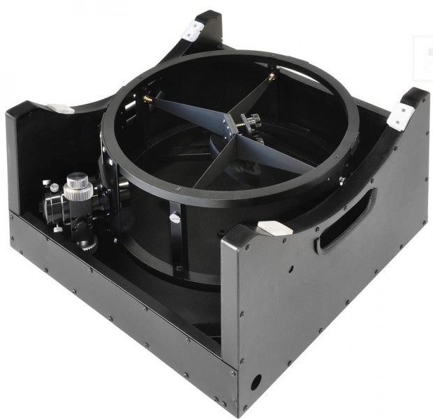 Explore Scientific hat das Prinzip "Held together by gravity and driven by yoghurt power (von der Schwerkraft zusammengehalten, und von Joghurtenergie angetrieben)" beherzigt und ein komplett neu konstruiertes modernes Dobsonteleskop mit Gitterrohrtubus erschaffen. Die Zerlegbarkeit des Gerätes ermöglicht einen problemfreien Transport dieses großen Gerätes auch in kleinen Autos - der Aufbau erfolgt komplett werkzeugfrei innerhalb weniger Minuten. Die gesamte Konstruktion wurde auf maximale Steifigkeit optimiert ohne das Gewicht zu vernachlässigen. Die Kombination aus großen Höhenrädern mit einer optimierten Aluminium-Sandwichkonstruktion ermöglicht feinste Korrekturbewegungen bei höchsten Vergrößerungen. Die Fokuslage wurde bereits für den Einsatz des Explore Scientific Komakorrektors vorbereitet.