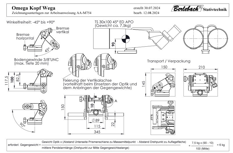- Anschlußmöglichkeit einer weiteren Prismenklemme am Pendelarm für das Gegengewicht