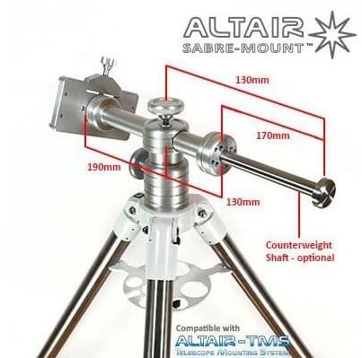 Optionale Gegengewichtsstange aus rostfreiem Stahl, mit Endanschlag für Sabre Montierungen. 20 mm Außendurchmesser, ragt 170 mm über die flache Seite des kurzen Arms hinaus.