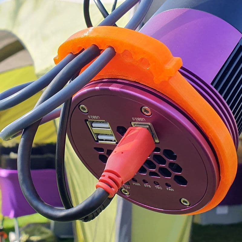 Zwei kleinere Kabelführungen sind im Lieferumfang enthalten. Eine hat ein M5/M6-kompatibles Montageloch für Schwalbenschwanzplatten oder Teleskoprohrringe, die andere hat ein gebogenes Profil für die meisten Teleskoprohre oder Dewshields mit einem Durchmesser von 200 mm oder mehr. Passt auf Altair 6-8“ Newtonians, Celestron C8, RASA8, C925 Series SCT's und die meisten anderen Teleskope ähnlicher Größe, da die Basis ein wenig flexibel ist. Um die Krümmung zu ändern, verwenden Sie einfach einen Fön, erwärmen Sie ihn vorsichtig auf etwa 150°C und biegen Sie ihn auf die gewünschte Krümmung.