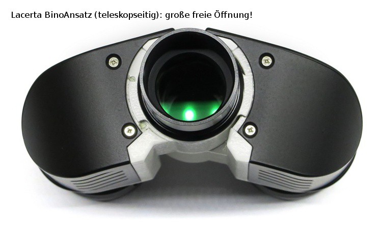 Das Sehen mit zwei Augen liefert ein völlig anderes Bild als mit nur einem Auge. Entspannter, plastischer und reicher an Detail. Speziell die Planeten und Mondbeobachtung bei etwas unruhiger Luft gewinnt sehr, weil das menschliche Gehirn dann aus dem Gewabere viel mehr Einzelheiten herauskristallisieren kann. Einmal ausprobieren - nie mehr missen wollen. Wir können es nur wärmstens empfehlen!