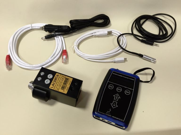 LACERTA Motorfokus Stand Alone und ASCOM-kompatibel mit Kamerasynchronisiereung, Mikroschritt-Steuerung, Temperaturfühler und Handbox. Reproduzierbare Positionierung in mikron Bereich, Tragekraft über 5kg.