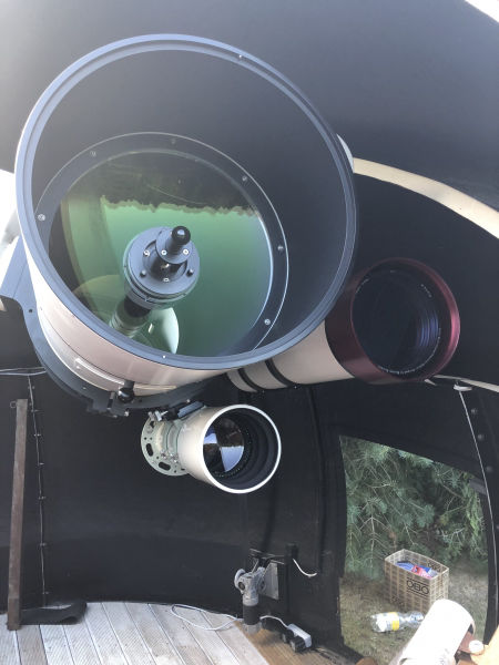 wir haben ein hochwertiges 20" F/8.5 Maksutov Cassegrain (Rumak Design) gebaut und ausgiebig unter realem Himmel getestet. Die Optik stammt von Santel in Russland, die Mechanik von Matthias Wirth in Deutschland. Das Biest ist jetzt zu verkaufen. Es kommt mit einem Satz Rohrschellen, Taukappe, 3" Starlight Feather Touch Auszug, Meniskusheitzung, Hauptspiegelüfter, 2 Wartungsklappen, Griffe zum Tubus bewegen und 2 Sätze losmandy Schwalbenschwanzhalter für große Leitfernrohre. Die Optik ist sehr Glatt und hat eine exzellente sphärische Korrektur. Die Linse ist beidseitig breitband Multivergütet. Das Auskühlverhalten ist hervorragend.