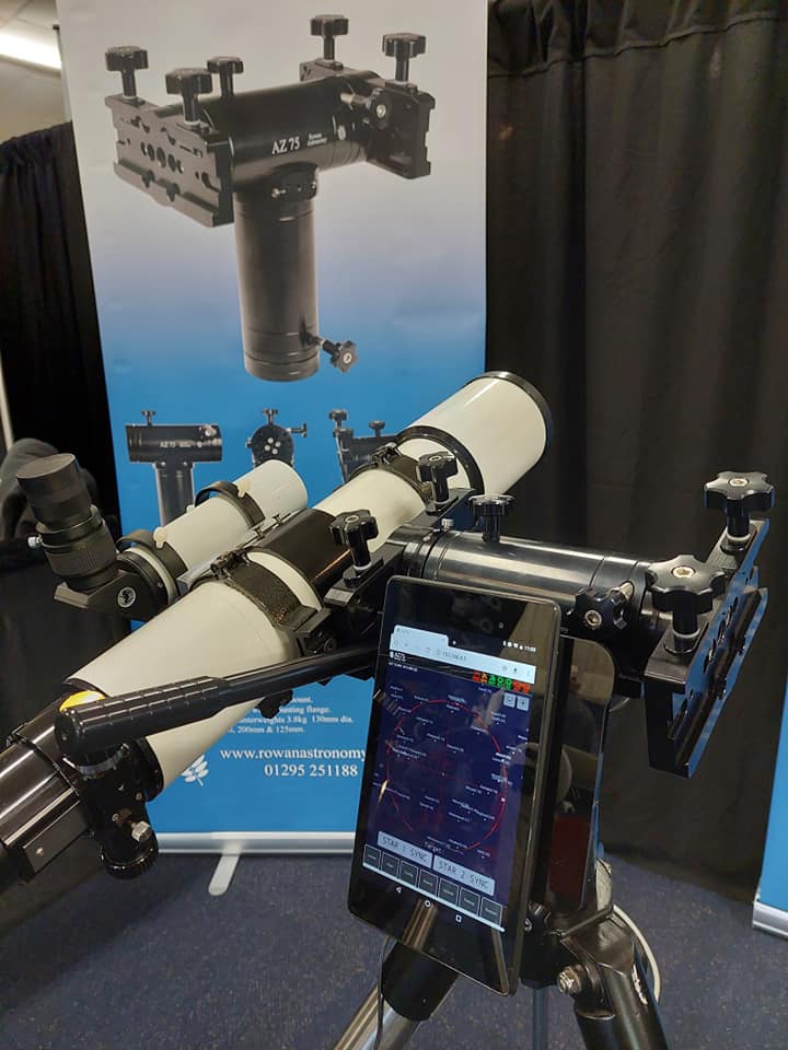 Diese elegante, aber trotzdem sehr robuste azimutale Doppelmontierung ist CNC-gefräst und wurde schwarz eloxiert, sowie im Anschluss mit Edelstahlbeschlägen ausgestattet.