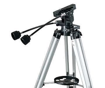 Die Montierung AZ3 hat eine flexible Auflageplatte, an die man Geräte mit Rohrschellen befestigen kann. Spektive oder Kameras haben jedoch den 1/4"-Fotostativanschluss.