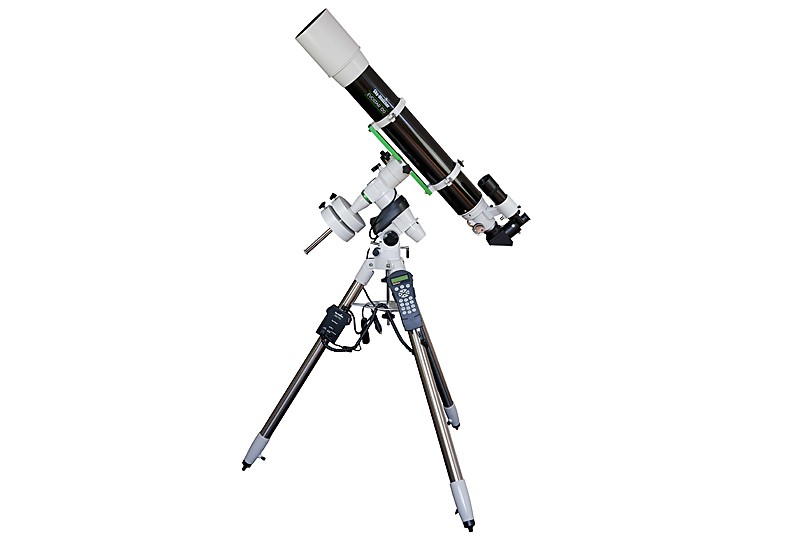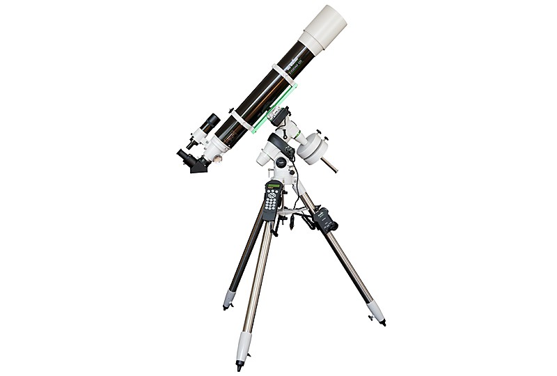 Skywatcher Evostar 120 Refraktor mit parallaktischer EQ5-SynScan-Montierung Ideales Instrument für den Einsteiger in die visuelle Beobachtung oder Astrofotografie Die Optik Skywatcher Evostar-Linsenteleskope sind klassische 2-linsiige Luftspalt-Achromaten. Die Optik wurde mehrfach vergütet. Sie überzeugen mit einer außergewöhnlichen, hohen Performance und hoher Auflösung und wurden nach höchsten Standards mit optischer und mechanischer Präzision gefertigt. Mit der großen Brennweite und atemberaubender, beugungsbegrenzter Optik sind sie ideal für die detailierte Beobachtung von Mond, Planeten und anderen Objekten des Sonnensystems bei hohen Vergrößerungen mit scharfer, kontrastreicher Abbildung.