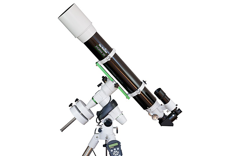Skywatcher Evostar 150 Refraktor mit parallaktischer EQ5-SynScan-Montierung Ideales Instrument für die visuelle Beobachtung oder Astrofotografie Die Optik Skywatcher Evostar-Linsenteleskope sind klassische 2-linsiige Luftspalt-Achromaten. Die Optik wurde mehrfach vergütet. Sie überzeugen mit einer außergewöhnlichen, hohen Performance und hoher Auflösung und wurden nach höchsten Standards mit optischer und mechanischer Präzision gefertigt. Mit der großen Brennweite und atemberaubender, beugungsbegrenzter Optik sind sie ideal für die detailierte Beobachtung von Mond, Planeten und anderen Objekten des Sonnensystems bei hohen Vergrößerungen mit scharfer, kontrastreicher Abbildung.