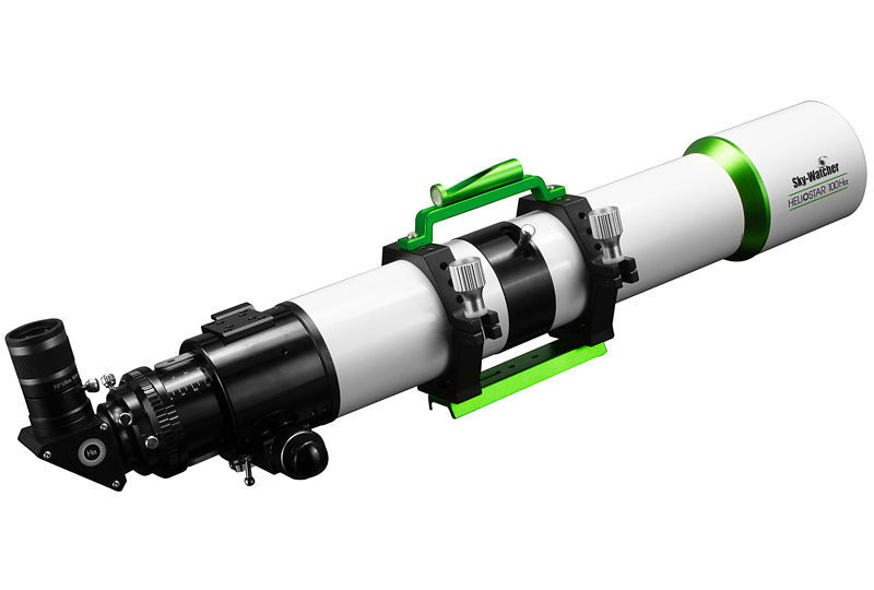 Der Sky-Watcher HELIOSTAR 100Hα ist ein 100mm premium H-Alpha Hochleistungssonnenteleskop, welches für den interessierten Sonnenbeobachter und Fotografen entwickelt wurde und eine außergewöhnliche Performance von 0.5 Angstrom oder besser bietet. Der Heliostar 100Hα ist ein präzises Werkzeug für die Sonnenastronomie und wird mit umfangreichem Zubehör einschließlich eines 22mm 70° Weitwinkel Okulares, einem Sonnenzenitprisma und einem Sonnensucher geliefert.