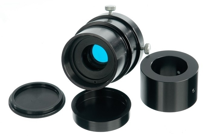 Solarscope/UK 70 mm 0.7 A Sonnen H-alpha Filter Set Solarfilter 70 H-Alpha Filter mit Blockingfilter Das Frontfilter wird mit einer variabler Kippvorrichtung geliefert. Mit der Kippvorrichtung kann die H-Alpha Linie optimal eingestellt werden. Das sekundär Blockingfilter hat 20 mm Durchmesser und ist in einem 2" Steckanschluß integriert. Ebenfalls im Lieferumfang enthalten ist eine 2"/1.25" Reduzierhülse. Das Frontfilter wird mit einer Maske direkt vor die Optik montiert. Masken mit standardgrößen für TeleVue Teleskope sind lieferbar. Das Filter kann auch mit einem Binokular betrieben werden. Lieferung mit Maske für TV101