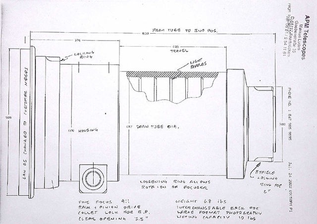 Der größte Okularauszug von Starlight und sicherlich einer der besten Okularauszüge weltweit für den Teleskopselbstbau und zum Upgraden von Teleskopen. Wir empfehlen den Auszug vor allem für Apochromate und für Cassegrains und RC-Teleskope, vorausgesetzt, die rückseitige Öffnung ist groß genug.