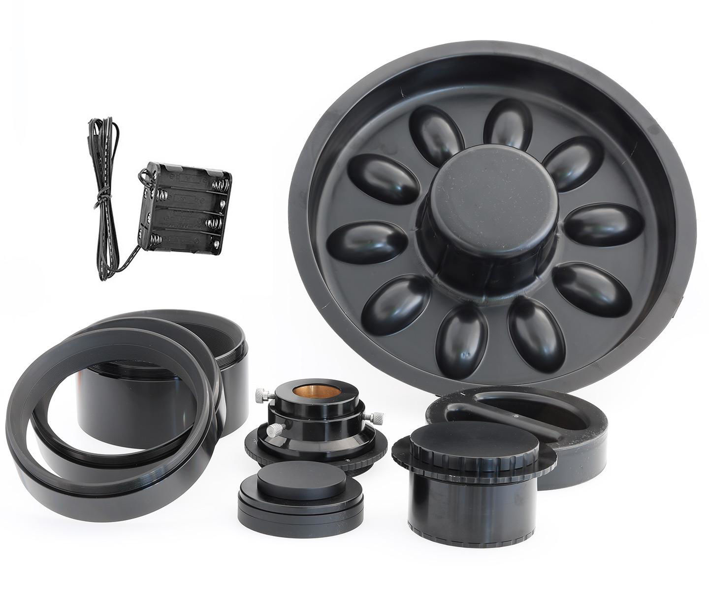 Obwohl der RC hauptsächlich für Fotografen gedacht ist, ist natürlich auch die Beobachtung möglich. Sie können einfach den Einsatz mit dem Korrektor aus dem Auszug rausschrauben und diesen durch einen 2"-Einsatz ersetzen. Die Umrüstung dauert nur wenige Minuten und schon haben Sie ein klassisches RC Teleskop für die Beobachtung oder Mond- und Planetenfotografie zur Verfügung. Der Einsatz auf 2" und die Reduzierung auf 1,25" sind natürlich im Lieferumfang enthalten.
