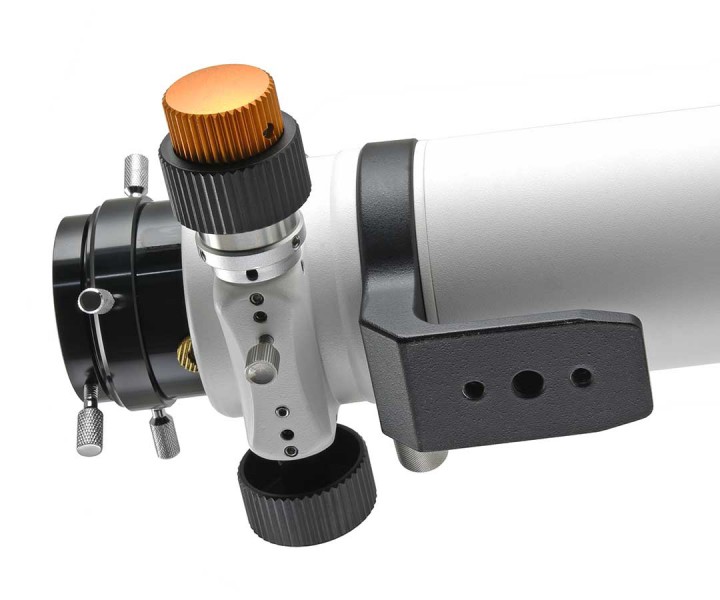 Das hochwertige 2-Element-Objektiv bildet scharf und kontrastreich ab und ermöglicht Vergrößerungen bis ca. 180fach. Damit können Sie bereits Details auf Planeten beobachten. Der neu entwickelte 2"-RAP-(Rack And Pinion)-Zahntriebauszug ist normalen Crayford-Auszügen überlegen und hält auch schweres fotografisches Zubehör sicher. Die Mikrountersetzung ist ideal für die Astrofotografie und erlaubt ein genaues Scharfstellen.