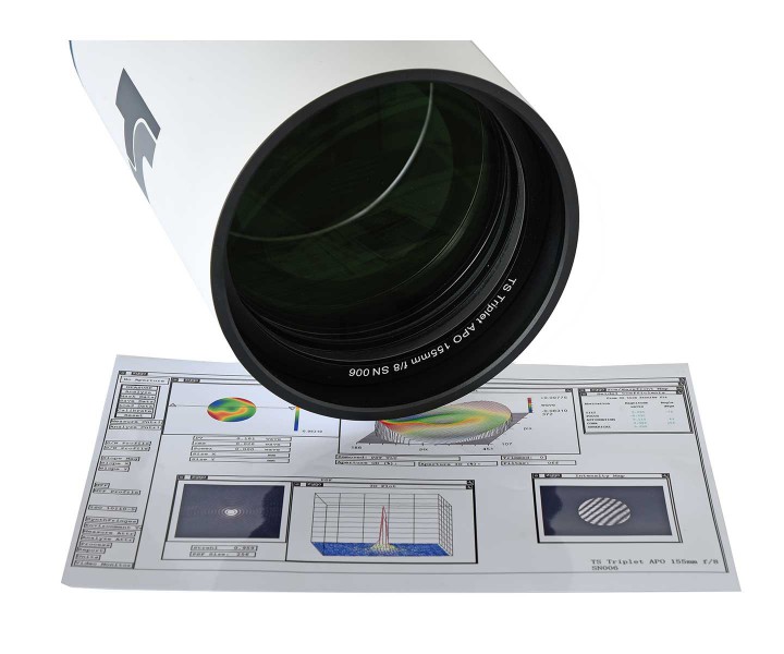 - Jeder Apo wird mit einem Testzertifikat durch den Hersteller ausgeliefert. Der Apochromat bekommt eine Seriennummer. Darüber hinaus wird jeder Apo bei Teleskop-Service auf der optischen Bank getestet und nochmal optimal eingemessen.