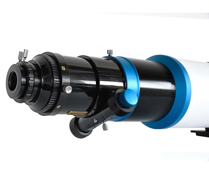 - Ein sehr guter 3,7"-Okularauszug mit Zahntriebverstellung. Das Auszugrohr ist kugelgelagert für eine genaue Verstellung auch bei hoher Belastung, zum Beispiel durch schwere Kameras.