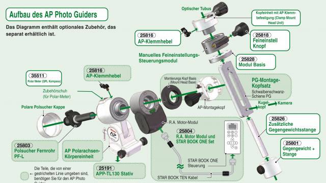Der AP Photo Guider wird mit der STAR BOOK ONE Steuerung geliefert und garantiert eine genaue Nachführung auch bei langen Belichtungszeiten.