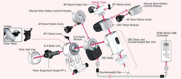 Vixen AP-SM Montierung mit RA Motormodul und Star Book One Steuerung