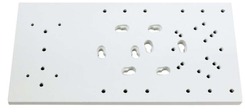Auf der 40cm x 20cm großen Platte können z.B. Rohrschellen, Kameras mit Teleobjektiven o.ä. Komponenten sicher montiert werden. Die Bohrungen sind so angebracht, dass fast alle gängigen Anbauteile darauf platz finden und verschraubt werden können.