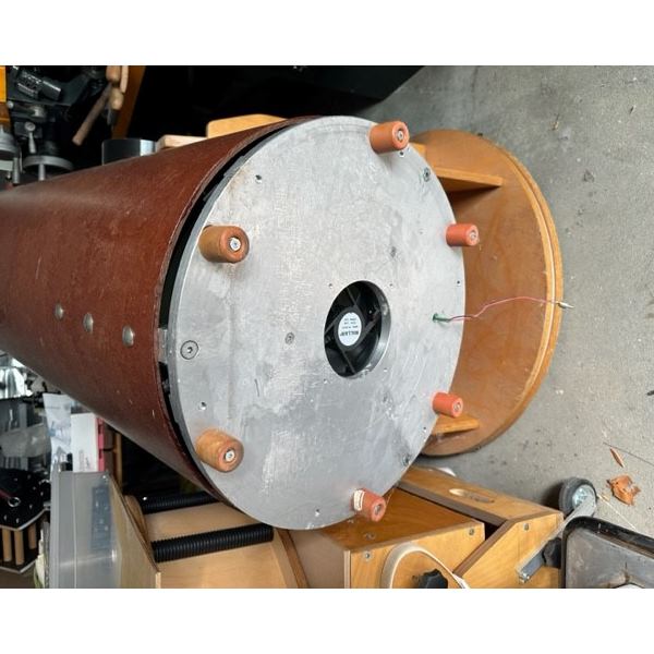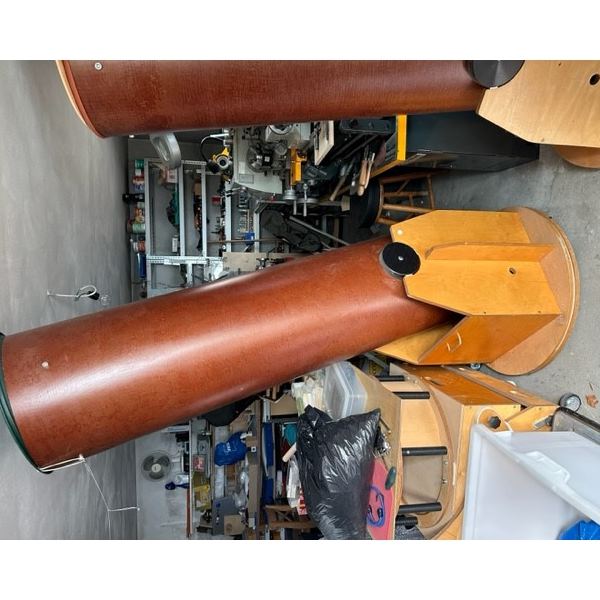 Wolfgang Rohr Dobson mit LOMO Spiegel 15" f/5 380 mm f/1900 mm ) , Fangspiegel ( L/10 PV Wellenfront) Durchmesser kleine Achse 78 mm = 20 % Abschattung , Tubus Durchmesser ca 470 mm, , Tubuslänge ca. 2000 mm, 2" JMI Okularauszug mit Untersetzung. Der Dobson mit dem hochwertigen LOMO Spiegel hat einen Hartpapier-Tubus bekommen. Dieser Dobson war Wolfgang Rohr ans Herz gewachsen, da er unten für die Vertikal- Drehung noch eigens 18-kleine Kugellagerung eingebaut habe. Die garantieren mir einen leichten und geräuschlosen Lauf. Am 07. Januar 2007 hat Wolfgang Rohr die Optik wie folgt vermessen : 532 nm ( Grün) P.t.v. 0,174 ( 1/5.7) , RMS 0,034 ( 1/29.3) , Strehl 95.5 % . eine Detailreiche Beschreibung gibt es hier > http://r2.astro-foren.com/index.php/de/11-beitraege/03-newton-systeme-und-verwandte-fragen/48-drei-hochwertige-dobsons Der Dobson kann nicht verschickt werden, der angegebene Preis ist ein Abholpreis bei Herrn Rohr in Hassfurt