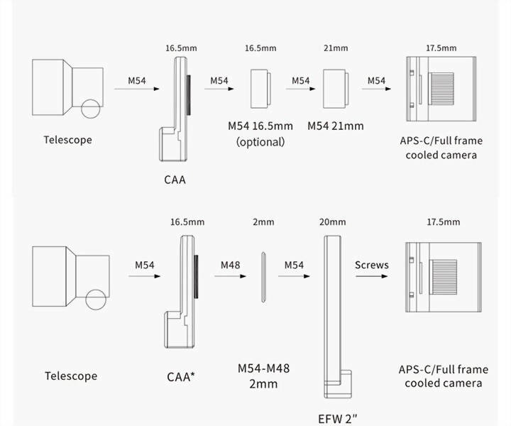 Stellen Sie den Kamerawinkel optimal zum Objekt ein, ohne das Teleskop berühren zu müssen. Damit erhalten Sie den optimalen Bildausschnitt damit das Objekt optimal zur Geltung kommt. Der CAA ist eine echte Arbeitserleichterung für Astrofotografen und notwendig für ferngesteuerte Teleskope (Remote-Sternwarten). Mit nur 465 Gramm Gewicht und 16,5 mm wirksamer Baulänge belastet der Rotator den Okularauszug nicht übermäßig und lässt sich gut in den Image-Train integrieren.