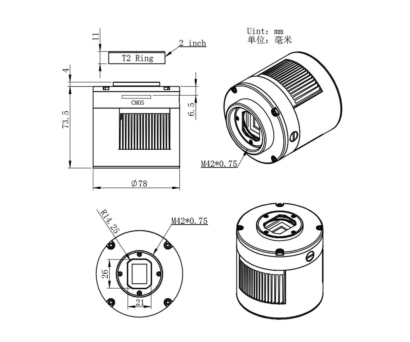 - Gute Auflösung durch 4,63-µm-Pixel Lieferung mit AR-Klarglasfilter - voller Durchlass auch im Infraroten. Wenn das IR geblockt werden soll, wird ein IR-Sperrfilter benötigt. Abstand T2-Anschlussgewinde (Innengewinde) zum Kamerasensor: 17,5 mm