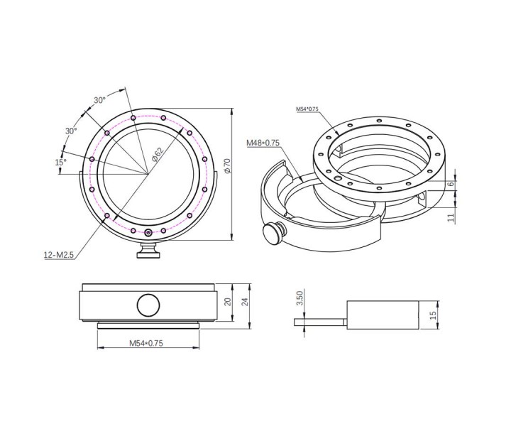 | Höhe | 20mm ohne M54 Aussengewinde |