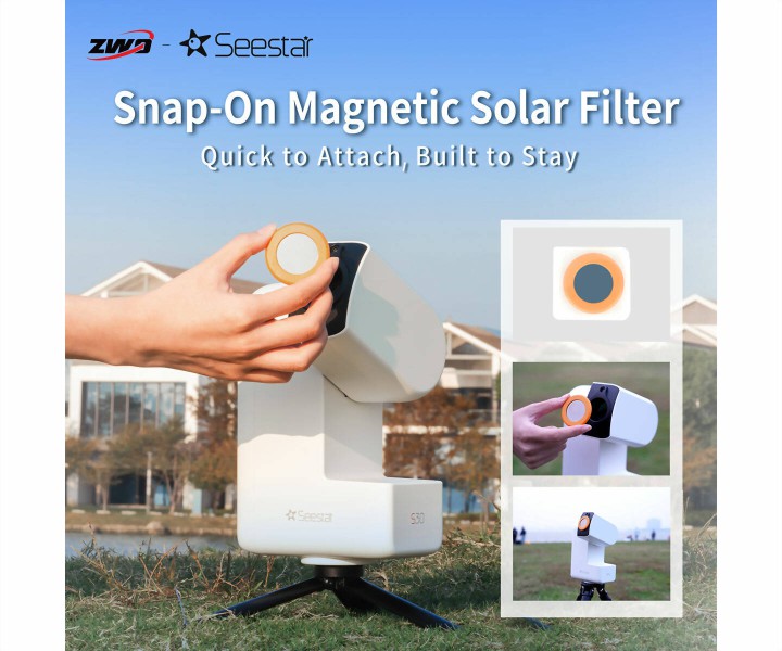 Das Seestar S30 vereint zwei Teleskope, einen elektrischen Fokussierer, eine astronomische Kamera, eine Heizung, einen intelligenten ASIAIR-Controller, eine azimutale Montierung und ein Filterrad (UV/IR-Sperrfilter, Duo-Bandfilter, Darkfilter) in einem einzigen Gerät mit einem Gewicht von nur 1,79 kg.