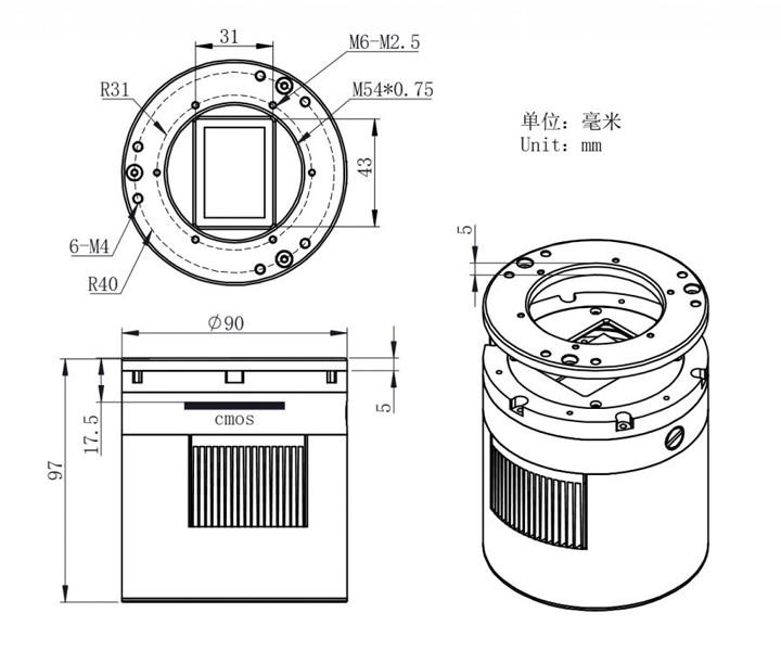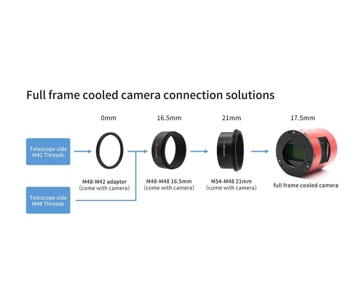 - Abstand T2-Anschlussgewinde (Innengewinde) zum Kamerasensor: 17,5 mm