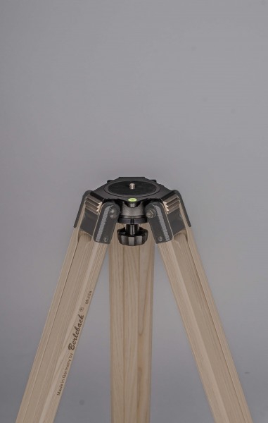 The tripod Report 112 is equipped with the module insert 1. This has a spring supported fastening screw 1/4", 3/8" or 5/8". It is suitable for the simple mounting of heavy heads or devices. the head is put on and is connected to the tripod by turning the screw. Single tripod leg extension. The light magnesium mounting head serves as module basis for 10 different inserts. The module insert can be changed at all times using a special wrench (included in the delivery of the changing module). The fixation in the cone ensures a positive-locking, clearance-free connection of the components. Thanks to the stop system, it is possible to set angles of spread at approx. 20°, 40°, 60°, 80° and 100° by means of a wing catch. The stop system is designed in such a way that the specified loads of the tripods are also guaranteed at a maximum inclination of the tripod legs.