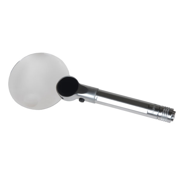 The M-1 features a 2.5x magnification main lens of 90 mm diameter with a separate more powerful 4x lens of 20 mm diameter. The feature that makes this product so incredibly useful is the newly developed integral LED illumination system with three brightness settings to evenly illuminate your subject matter in any lighting conditions. This is arguably the perfect hand held magnifier available today. (Requires 2 AA batteries, not supplied)
